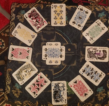 This is a traditional playing card divination reading (cartomancy) that maps out your year ahead — not as rigid fate, but as probable patterns, likely events, and the influences shaping your path.You can order this at any time of the year.